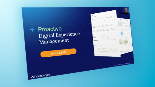 La demostración muestra la capacidad de la solución Netskope One Digital Experience Management (Netskope One DEM) para rastrear y solucionar problemas de rendimiento de la aplicación de experiencia del usuario. Muestra cómo el contexto del usuario, las métricas del dispositivo, el análisis detallado de la red, el rendimiento de la aplicación y SASE Plataforma aceleran el diagnóstico de problemas para una resolución eficaz de problemas.