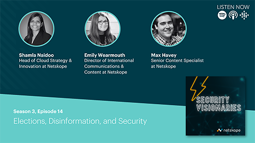 Max Havey [00:00:01] Hola y bienvenidos a otra edición del Security Visionaries Podcast, un podcast sobre el mundo de los ciberdatos y la infraestructura tecnológica, que reúne a expertos de todo el mundo y de distintos ámbitos. Soy su anfitrión, Max Havey, especialista senior en contenidos de Netskope, y hoy hablamos de elecciones. Es el año de las elecciones, por lo que seríamos negligentes si no dedicáramos un episodio a la seguridad electoral y las amenazas cibernéticas a la democracia. Y por suerte, la invitada habitual y amiga del programa, Shamla Naidoo, es, entre muchas otras cosas, profesora de derecho en la Universidad de Illinois e imparte una clase sobre seguridad electoral. Así que, charlando con ella antes de grabar otro episodio, nos enteramos de esto y tuvimos que ponerla en marcha. Shamla, bienvenido de nuevo. Me alegro de tenerte aquí.