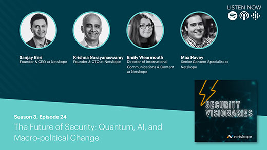 0:01:14.7 Emily Wearmouth: Now, in those intervening years, Sanjay was never alone and I'm incredibly excited that he has joined on today's episode by his co-founder Netskope CTO, Krishna Narayanaswamy. Krishna has been on the podcast before talking about patents, and I highly recommend going into the back catalog to listen to that one if you missed it. We were celebrating him being awarded his 100th patent, which I think officially makes him a security visionary by anybody's standards. So welcome back to the podcast. Krishna.