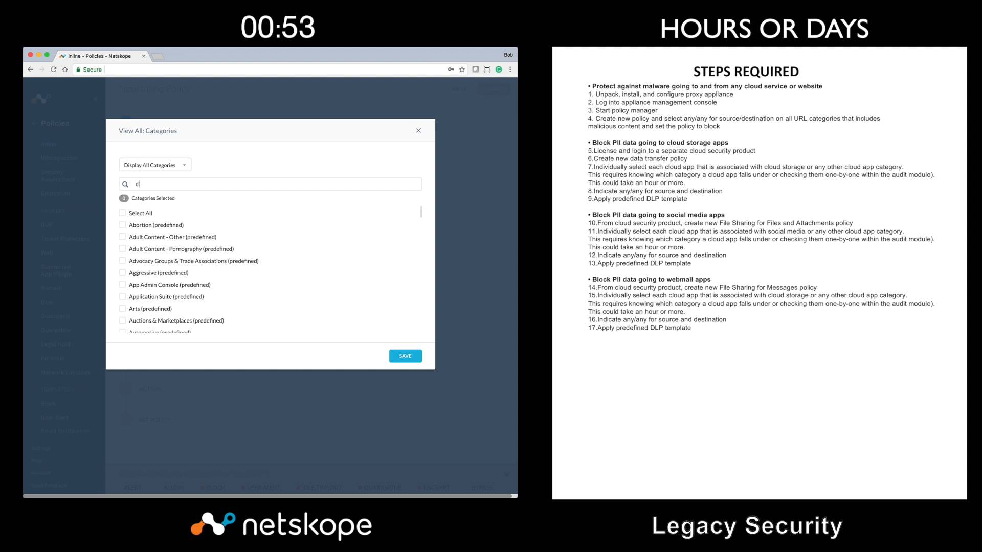 Pour mieux comprendre la force du moteur de politique unifiée, comparons la façon dont certains outils de sécurité traditionnels répondent à un ensemble de cas d'utilisation clés en matière de sécurité Web et de cloud computing.