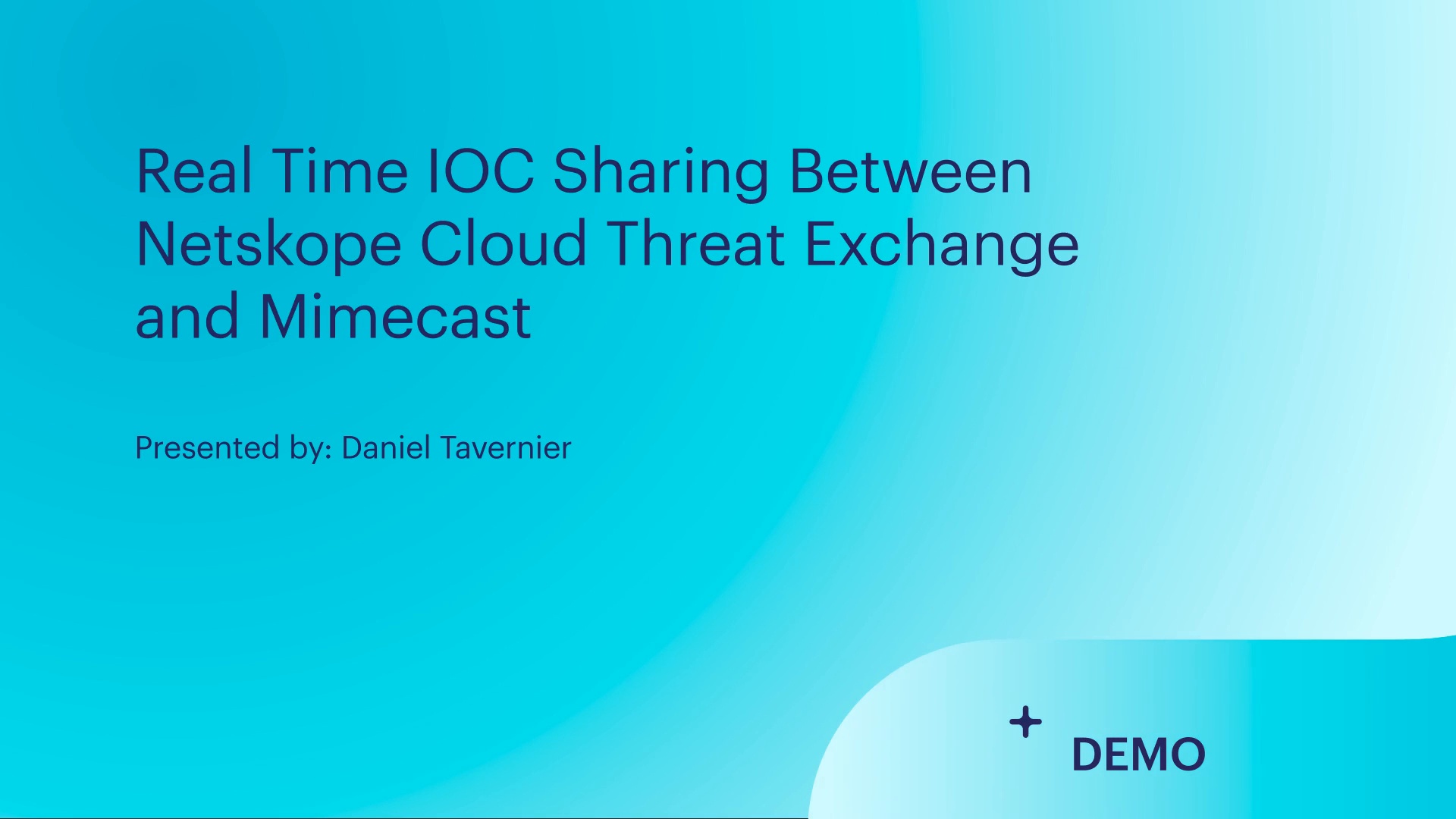 これは、 Netskopeの Cloud Threat Exchange Mimecast統合のデモンストレーションです。