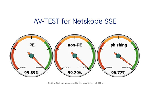 Netskope One Threat Protection provides high-efficacy threat detection and blocking for advanced malware (such as ransomware) and phishing. See the recent AV-Test report for details, the results are “best in class” for threat efficacy with a fast user experience.