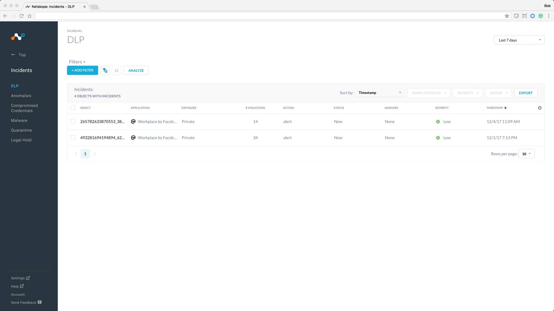 Netskope for Workplace protects sensitive data and helps ensure compliance so your employees can safely collaborate and be productive. Netskope provides deep API integration with Workplace, enabling you to gain a complete view of all users, devices, and activities across Workplace groups, projects, and chats.