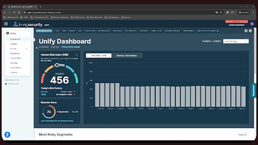 The system empowers businesses to proactively protect themselves through automated workflows that engage users in various ways, such as assigning training or adjusting access levels. Finally, the dashboard offers comprehensive reporting on the impact of these actions, providing clear ROI and demonstrating the effectiveness of risk mitigation strategies at individual, segment, and organizational levels. Discover how this unified approach can bring vigilance to any business.