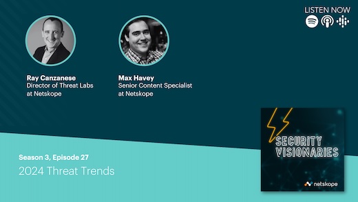 0:00:01.4 Max Havey: Hello, and welcome to another edition of Security Visionaries, a podcast all about the world of cyber, data and tech infrastructure, bringing together experts from around the world and across domains. I'm your host, Max Havey, and today we're taking a look back at some of the big threat trends of 2024, and looking ahead at what may be on the horizon in 2025 with our guest, Ray Canzanese, director of Netskope Threat Labs. Ray, thanks for joining us.